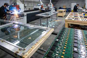 In-house glass processing, metal/wood framing, and electronic assembly minimize external dependencies.